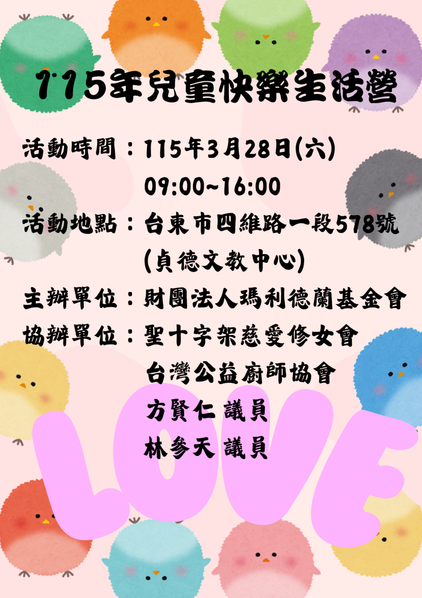 115年台東瑪利德蘭基金會「慈愛書屋兒童快樂生活營」